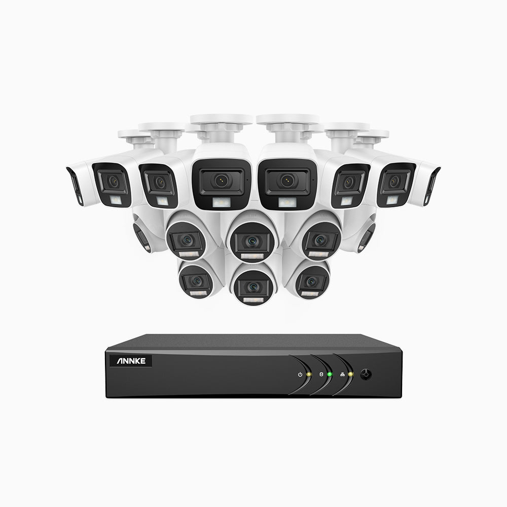 ADLK500 - Kit videosorveglianza analogica 16 canali 3K, 8 telecamera bullet e 8 telecamera turret, Visione notturna a doppia luce, apertura superiore f/1.2, segnale di uscita 4-in-1, microfono integrato, IP67 resistente alle intemperie