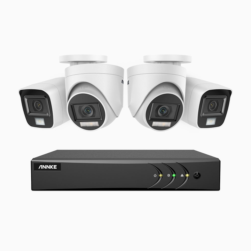 ADLK500 - Kit videosorveglianza analogica 8 canali 3K, 2 telecamera bullet e 2 telecamera turret, Visione notturna a doppia luce, apertura superiore f/1.2, segnale di uscita 4-in-1, microfono integrato, IP67 resistente alle intemperie