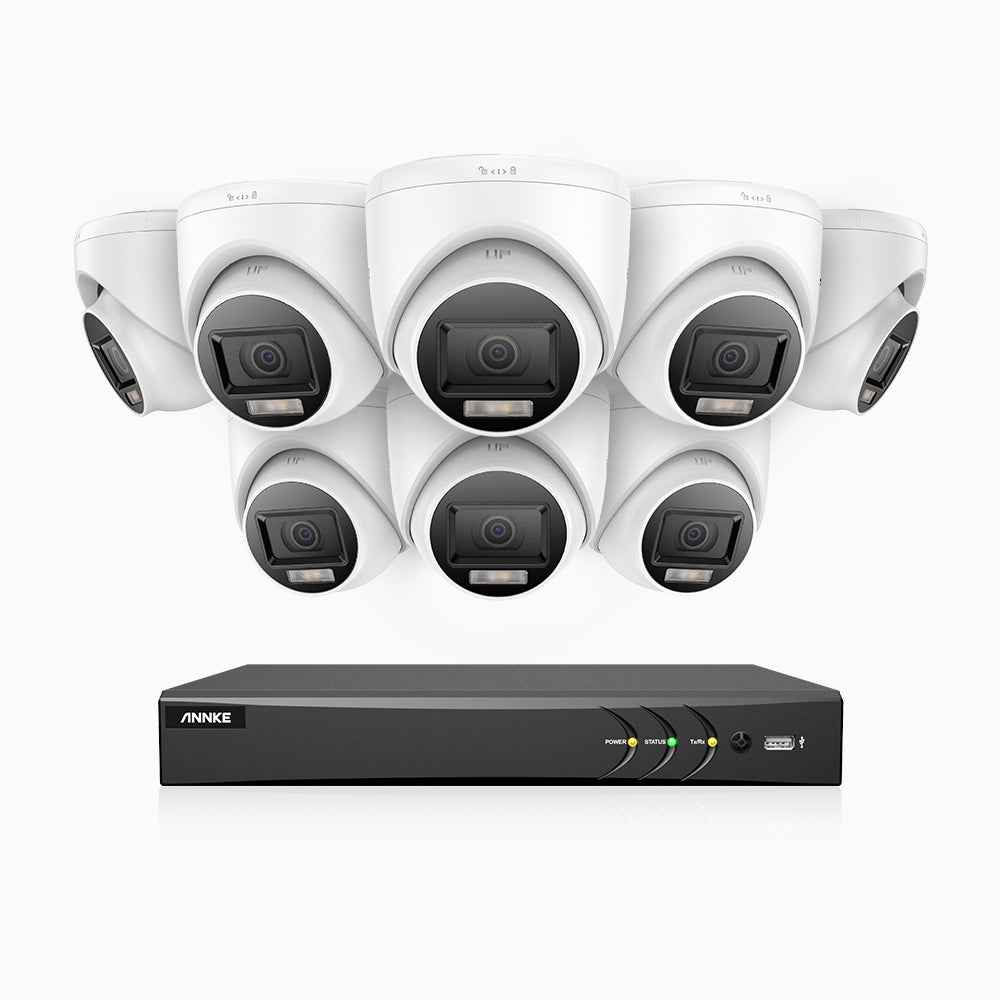 ADLK800 - Kit videosorveglianza analogica 8 canali con 8 telecamere 4K, Visione notturna a doppia luce, 3840x2160@20fps, apertura superiore f/1.6, segnale di uscita 4-in-1, IP67