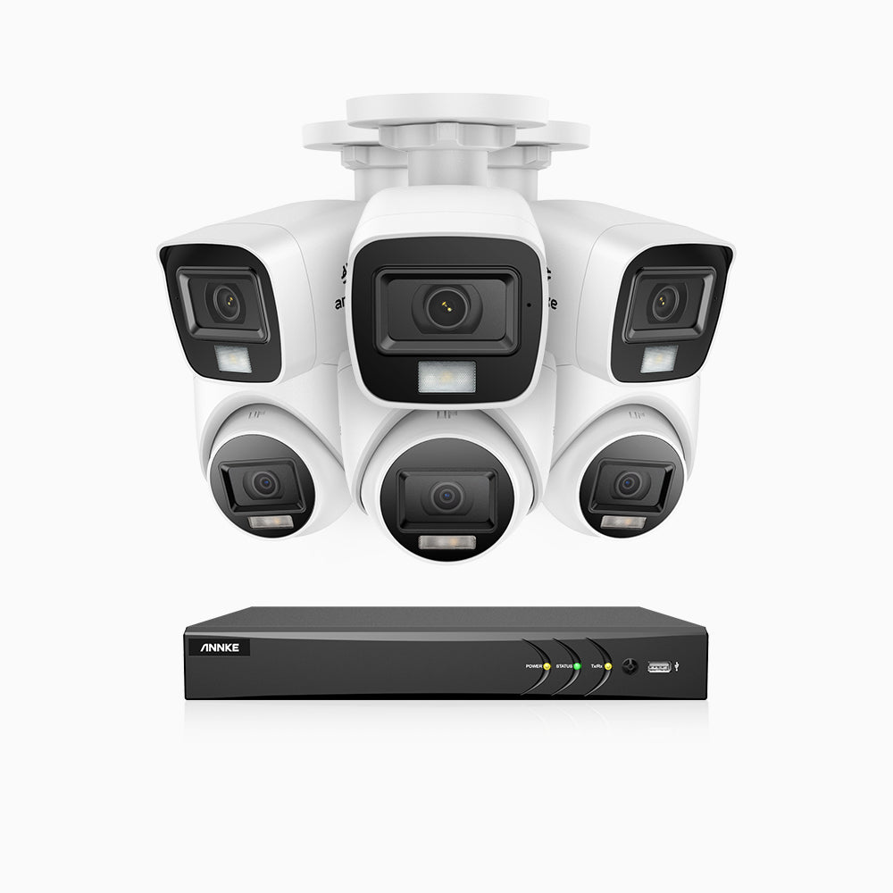 ADLK800 - Kit videosorveglianza analogica 8 canali 4K, 3 telecamera bullet e 3 telecamera turret, Visione notturna a doppia luce, 3840x2160@20fps, apertura superiore f/1.6, segnale di uscita 4-in-1, IP67