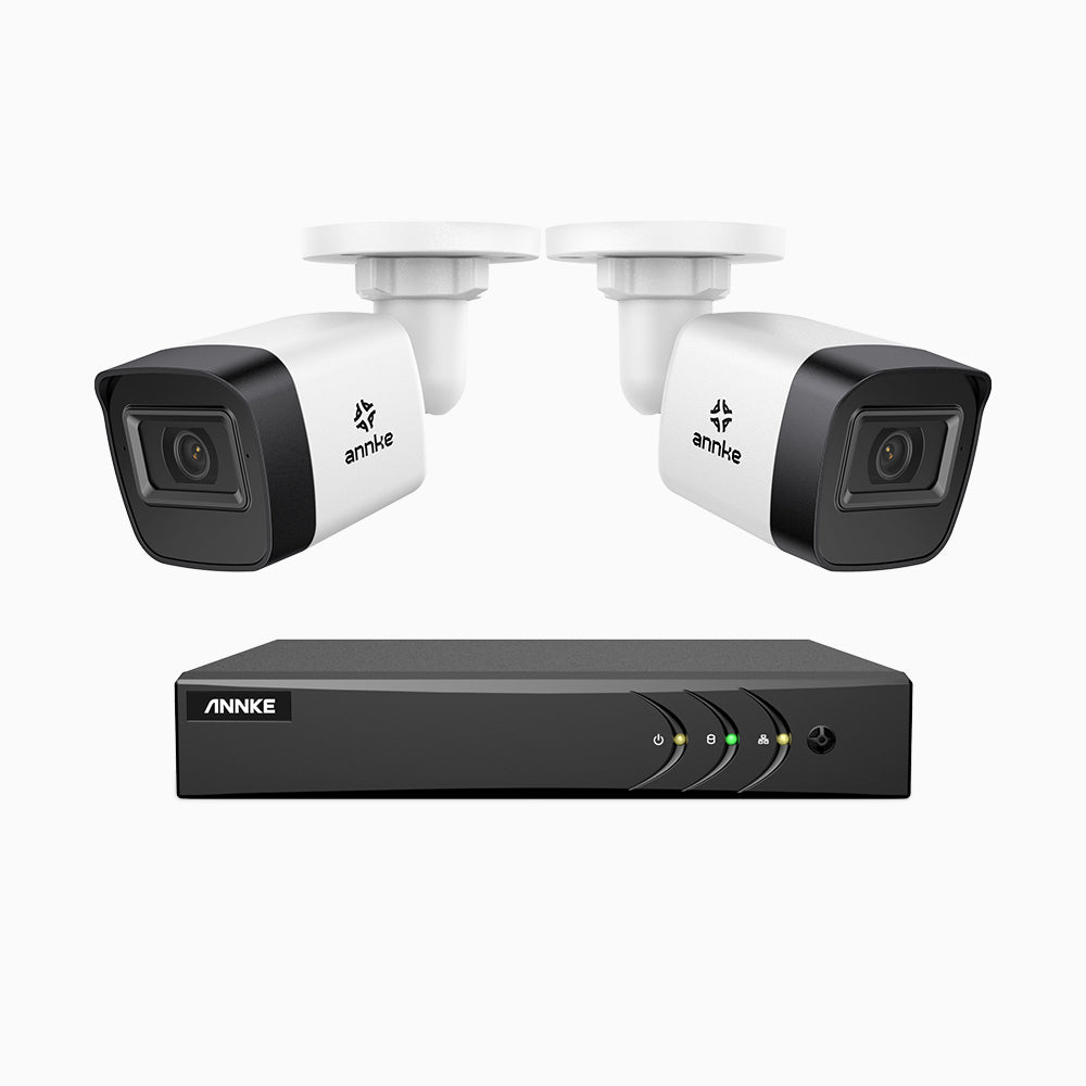 EL200 - Kit videosorveglianza analogica 8 canali con 2 telecamere 1080p, Smart DVR con rilevamento umano e veicoli, visione notturna a infrarossi fino a 66 piedi, segnale di uscita 4-in-1, IP67