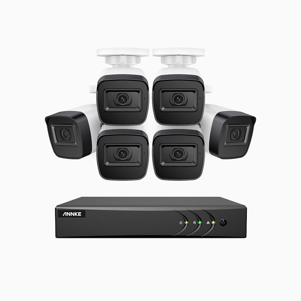 EL200 - Kit videosorveglianza analogica 8 canali con 6 telecamere 1080p, Smart DVR con rilevamento umano e veicoli, visione notturna a infrarossi fino a 66 piedi, segnale di uscita 4-in-1, IP67