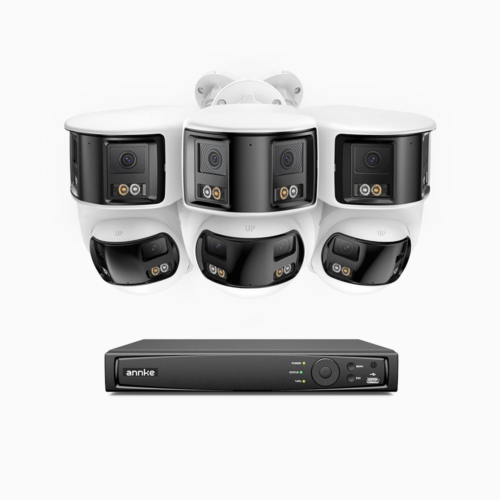 FDH800 - Kit videosorveglianza PoE doppia lente 8 canali 4K, 3 telecamere bullet e 3 telecamere, vista panoramica a 180°, visione notturna intelligente a doppia luce, audio bidirezionale, sirena e allarme attivi, rilevamento persone e veicoli, IP67