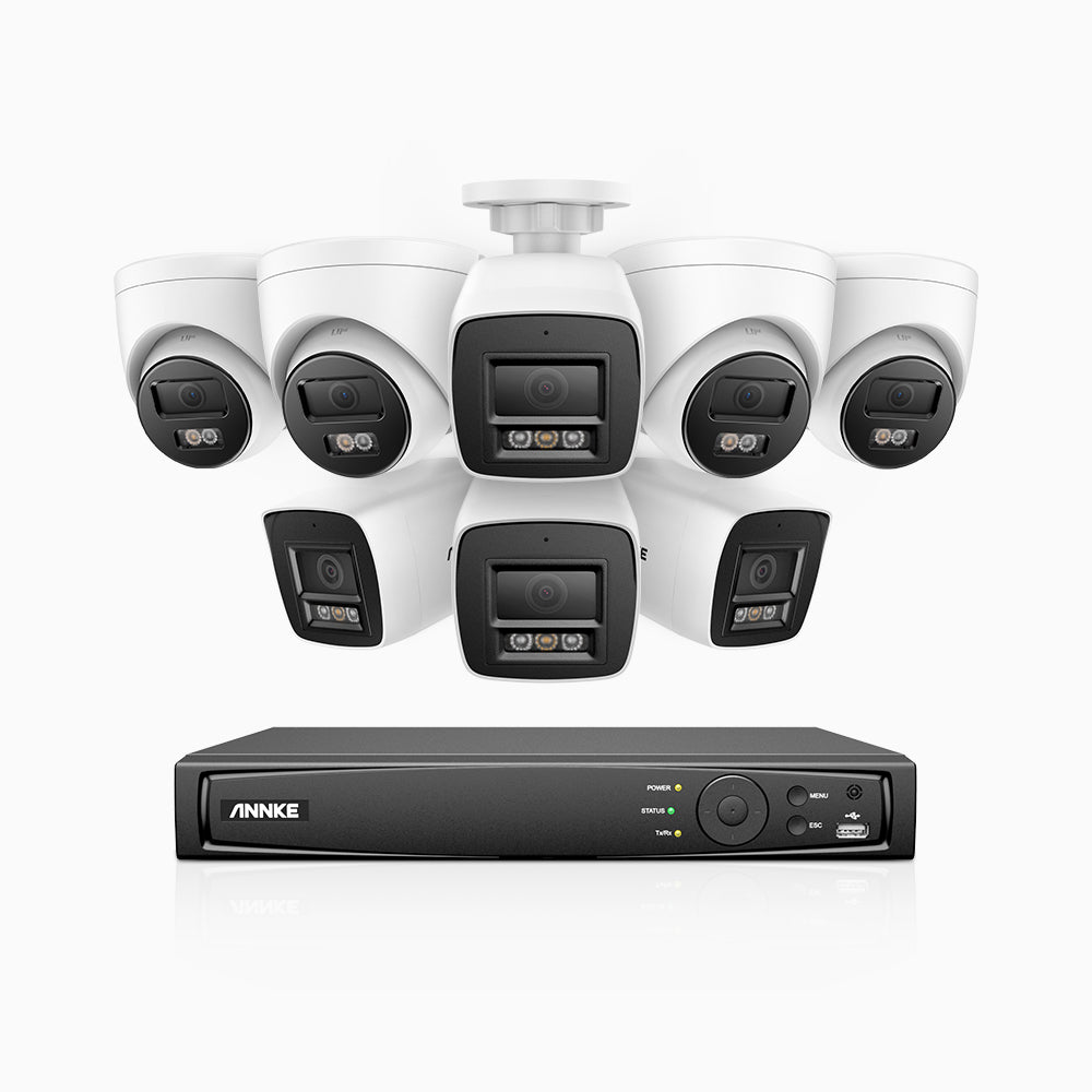 H1200 - 16-channel 4K 12MP PoE video surveillance kit, 4 bullet cameras and 4 turret cameras, visione notturna a colori e IR, Rilevamento umano e veicolare, H.265+, Microfono integrato, Archiviazione locale fino a 512 GB, IP67
