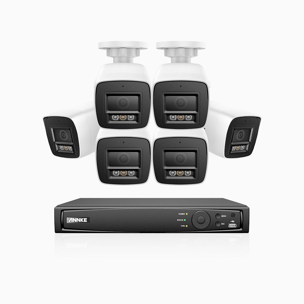 H1200 - 8 channel PoE video surveillance kit with 6 cameras 4K 12MP, visione notturna a colori e IR, Rilevamento umano e veicolare, H.265+, Microfono integrato, Archiviazione locale fino a 512 GB, IP67