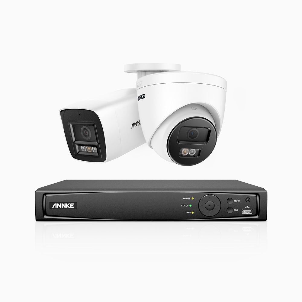 H1200 - 8-channel 4K 12MP PoE video surveillance kit, 1 bullet cameras and 1 turret cameras, visione notturna a colori e IR, Rilevamento umano e veicolare, H.265+, Microfono integrato, Archiviazione locale fino a 512 GB, IP67