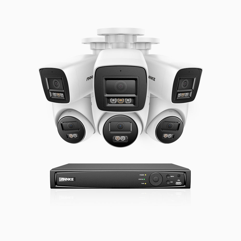 H1200 - 8-channel 4K 12MP PoE video surveillance kit, 3 bullet cameras and 3 turret cameras, visione notturna a colori e IR, Rilevamento umano e veicolare, H.265+, Microfono integrato, Archiviazione locale fino a 512 GB, IP67