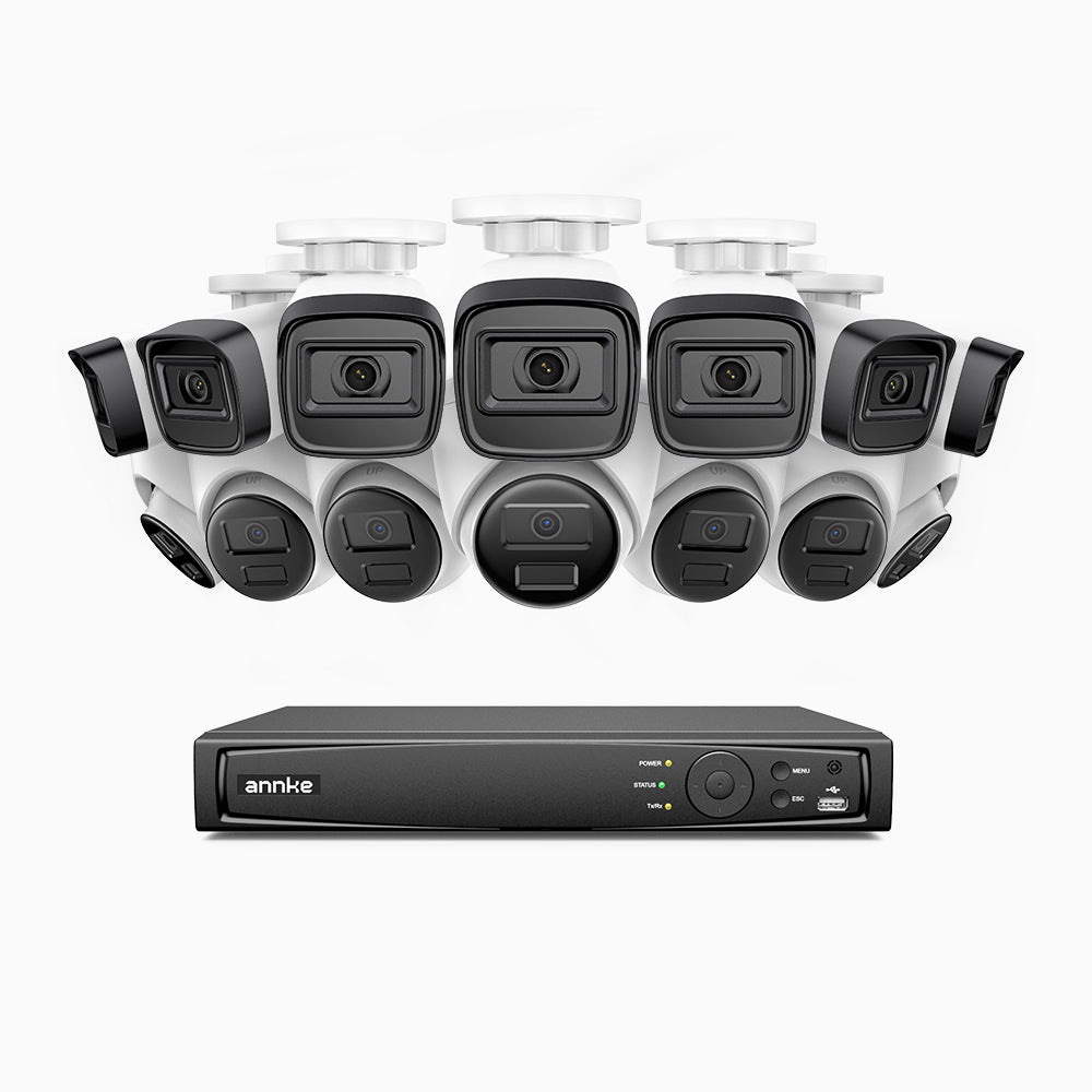 H300 - Kit videosorveglianza PoE 16 canali 3MP, 7 telecamera bullet e 7 telecamera turret,  visione notturna EXIR 2.0, rilevamento del movimento, H.265+, impermeabilità IP67