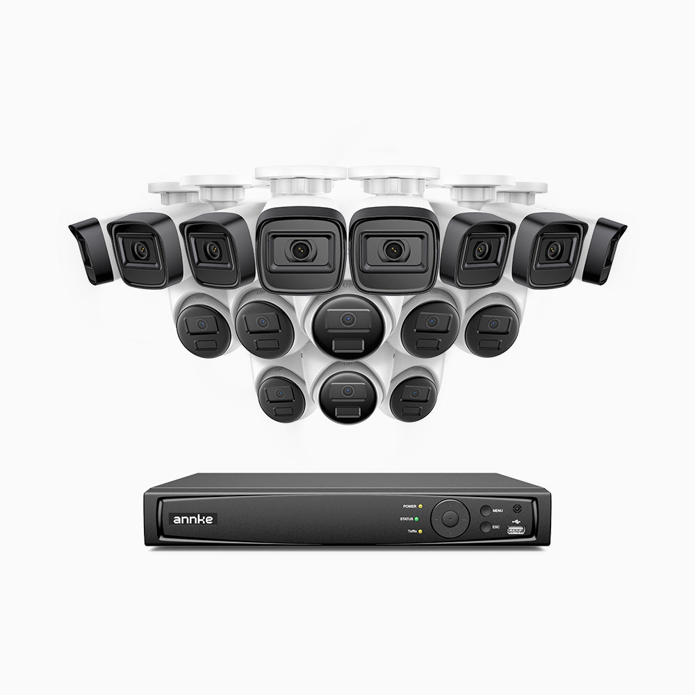 H300 - Kit videosorveglianza PoE 16 canali 3MP, 8 telecamera bullet e 8 telecamera turret,  visione notturna EXIR 2.0, rilevamento del movimento, H.265+, impermeabilità IP67