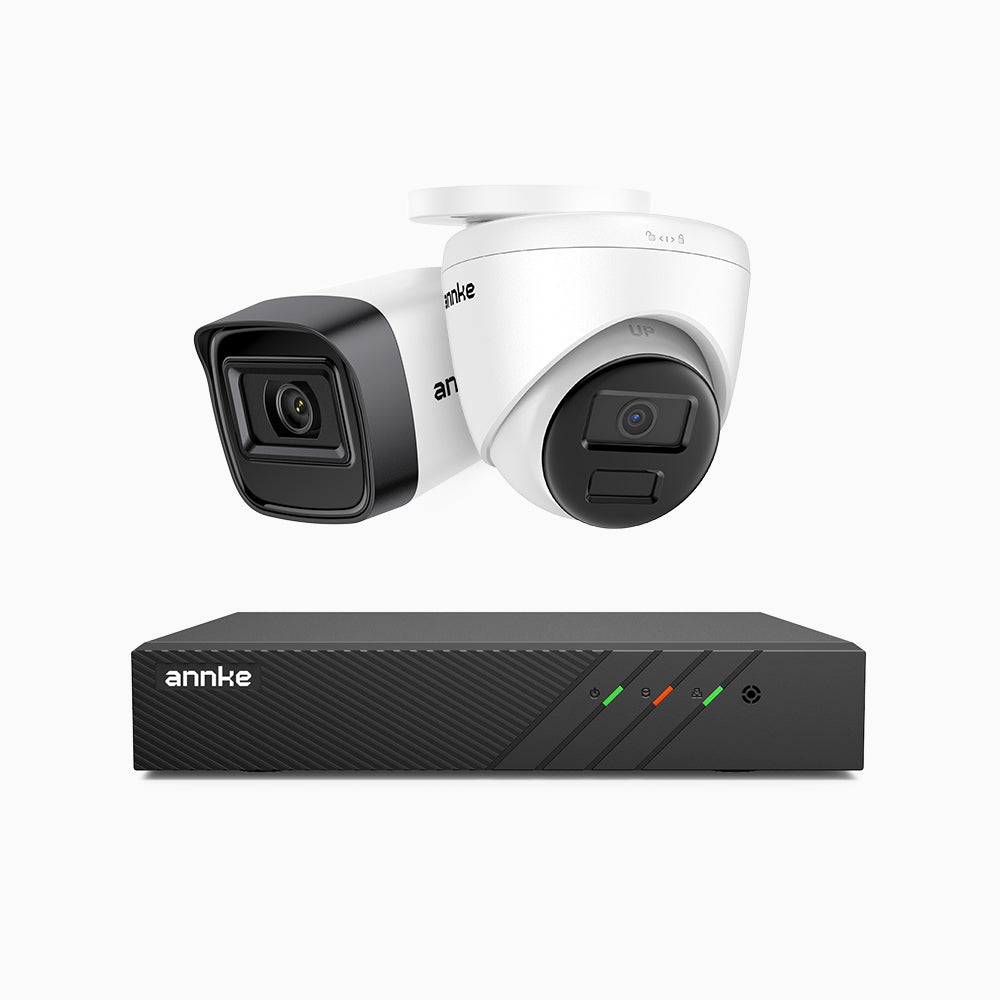 H300 - Kit videosorveglianza PoE 8 canali 3MP, 1 telecamera bullet e 1 telecamera turret,  visione notturna EXIR 2.0, rilevamento del movimento, H.265+, impermeabilità IP67