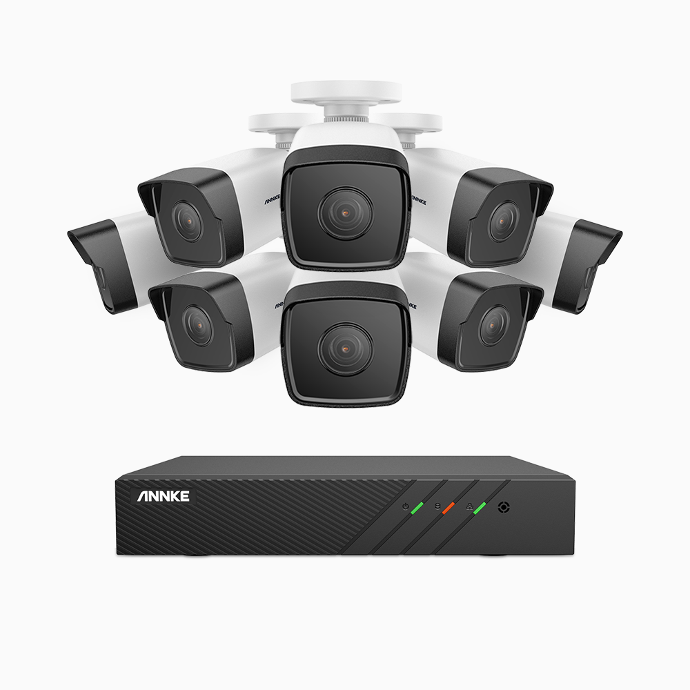 H500 - Kit videosorveglianza PoE 8 canali con 8 telecamere 5 MPX, EXIR Visione Notturna, microfono integrato, IP67, supporta ONVIF e RTSP