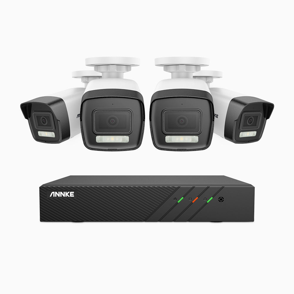 H500P - Kit videosorveglianza PoE 8 canali con 4 telecamera 3K, visione notturna a colori, microfono integrato, IP67, supporta ONVIF e RTSP