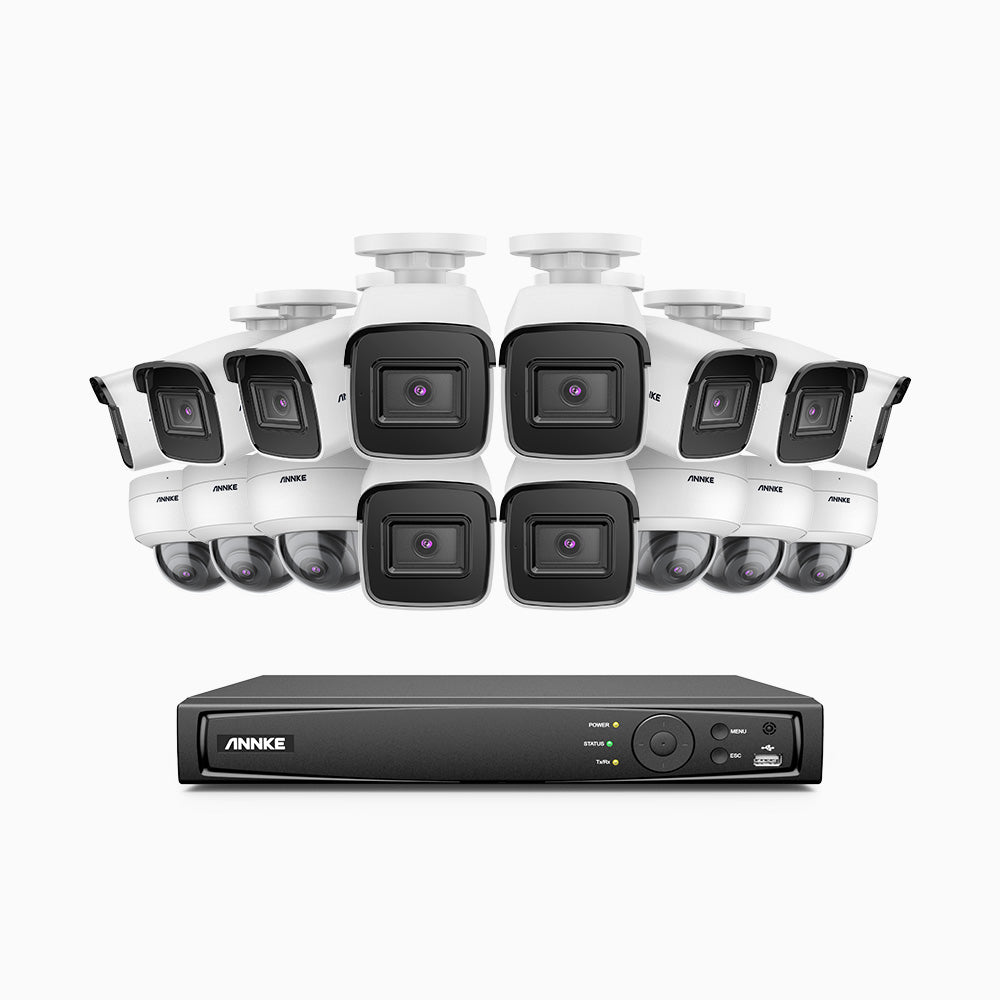 H800 - Kit videosorveglianza PoE 16 canali 8 MPX (4K), 10 telecamere bullet e 6 telecamere dome, resistente ai vandalismi IK10, visione notturna a colori e IR, microfono integrato, riconoscere di persone e veicoli, supporta ONVIF e RTSP