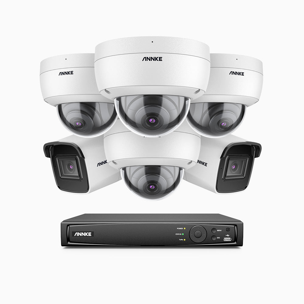 H800 - Kit videosorveglianza PoE 16 canali 8 MPX (4K), 2 telecamere bullet e 4 telecamere dome, resistente ai vandalismi IK10, visione notturna a colori e IR, microfono integrato, riconoscere di persone e veicoli, supporta ONVIF e RTSP