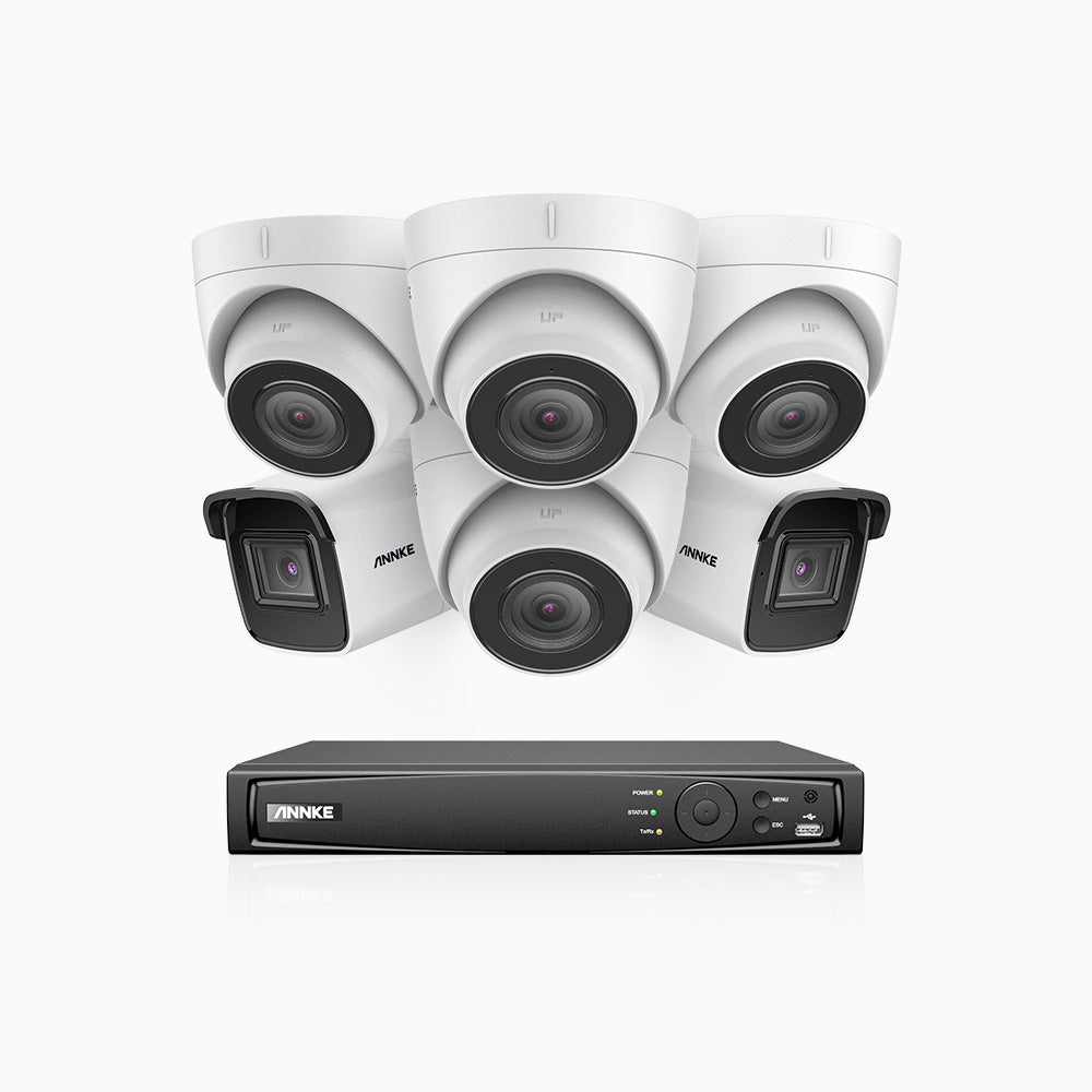 H800 - Kit videosorveglianza PoE 16 canali 8 MPX (4K), 2 telecamere bullet e 4 telecamere turret, visione notturna a colori e IR,microfono integrato, riconoscere di persone e veicoli, supporta ONVIF e RTSP