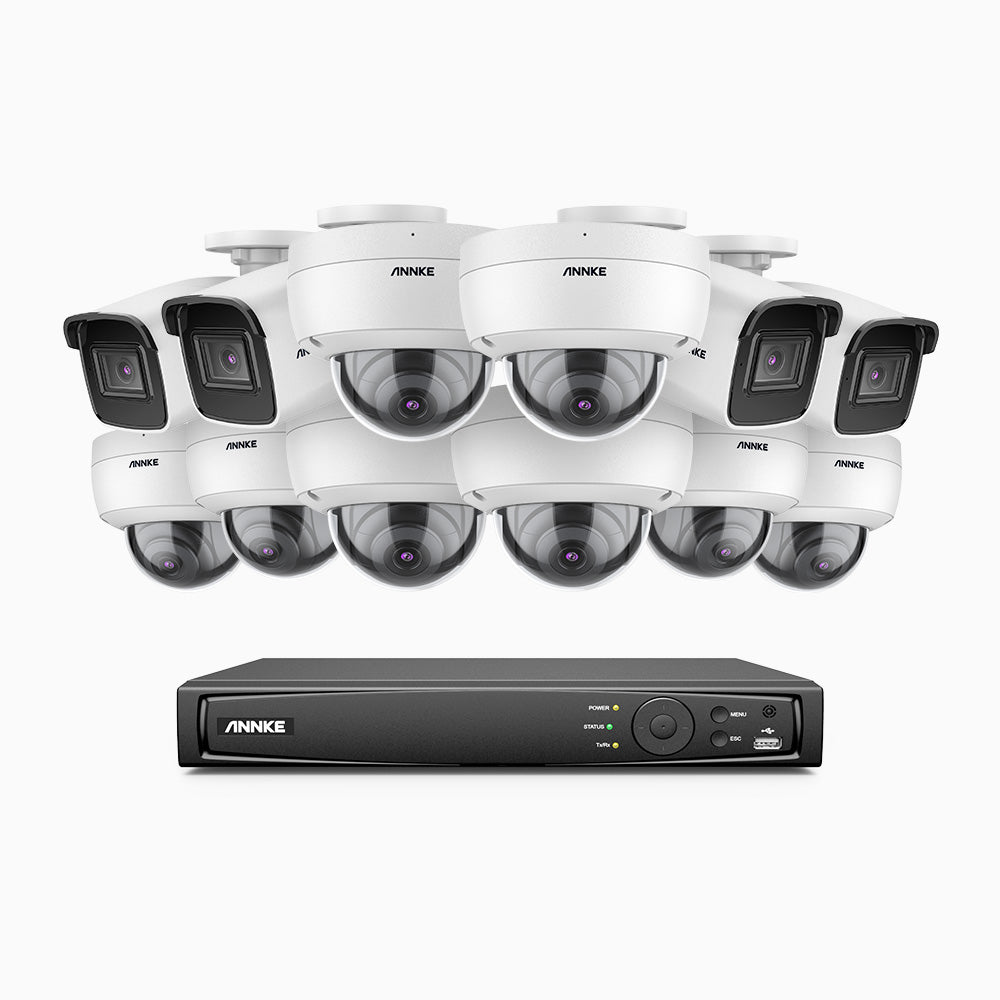 H800 - Kit videosorveglianza PoE 16 canali 8 MPX (4K), 4 telecamere bullet e 8 telecamere dome, resistente ai vandalismi IK10, visione notturna a colori e IR, microfono integrato, riconoscere di persone e veicoli, supporta ONVIF e RTSP