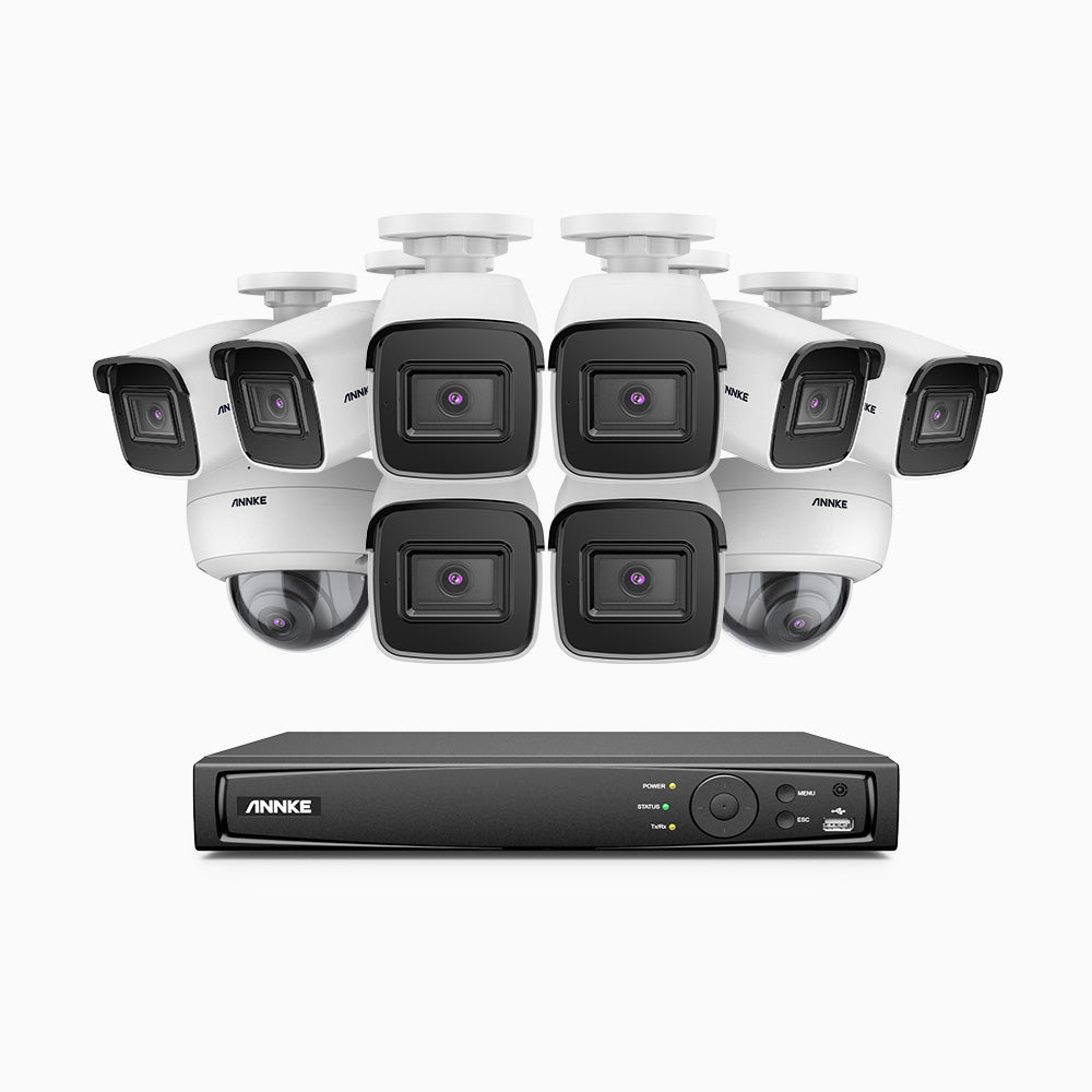 H800 - Kit videosorveglianza PoE 16 canali 8 MPX (4K), 8 telecamere bullet e 2 telecamere dome, resistente ai vandalismi IK10, visione notturna a colori e IR, microfono integrato, riconoscere di persone e veicoli, supporta ONVIF e RTSP