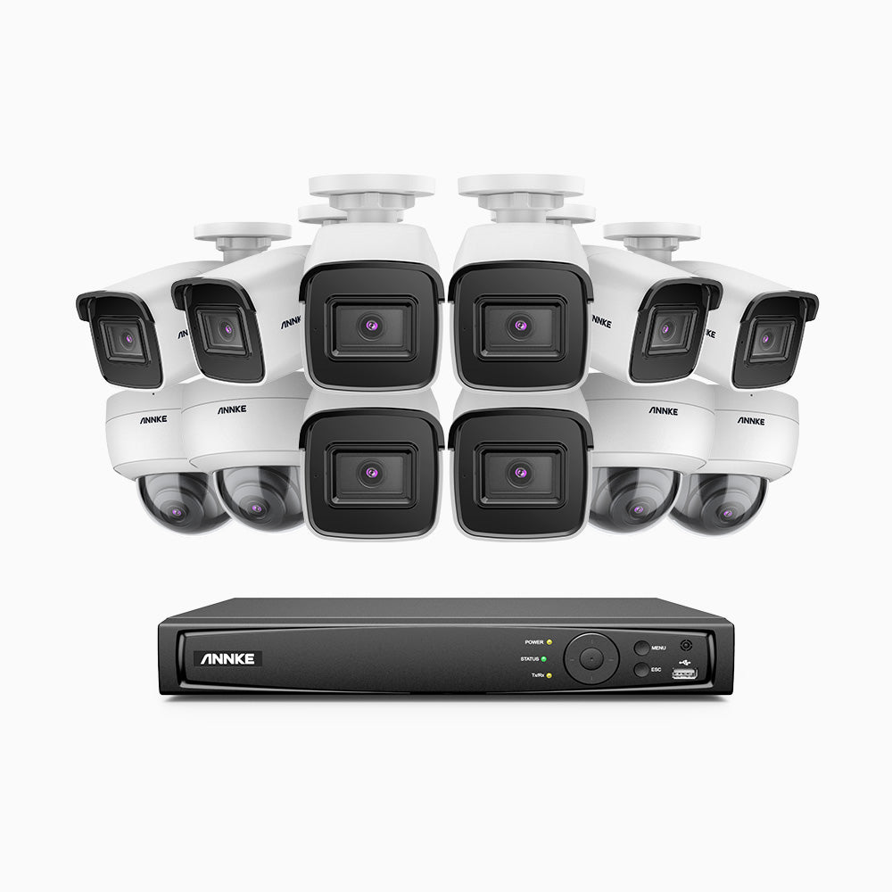 H800 - Kit videosorveglianza PoE 16 canali 8 MPX (4K), 8 telecamere bullet e 4 telecamere dome, resistente ai vandalismi IK10, visione notturna a colori e IR, microfono integrato, riconoscere di persone e veicoli, supporta ONVIF e RTSP