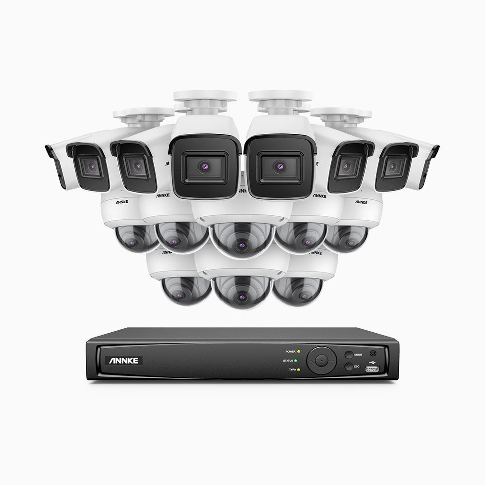 H800 - Kit videosorveglianza PoE 16 canali 8 MPX (4K), 8 telecamere bullet e 8 telecamere dome, resistente ai vandalismi IK10, visione notturna a colori e IR, microfono integrato, riconoscere di persone e veicoli, supporta ONVIF e RTSP