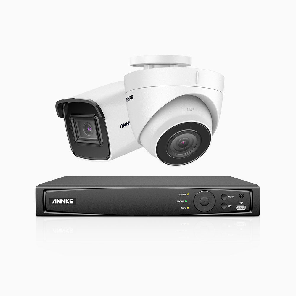 H800 - Kit videosorveglianza PoE 8 canali 8 MPX (4K), 1 telecamera bullet e 1 telecamera turret, visione notturna a colori e IR,microfono integrato, riconoscere di persone e veicoli, supporta ONVIF e RTSP