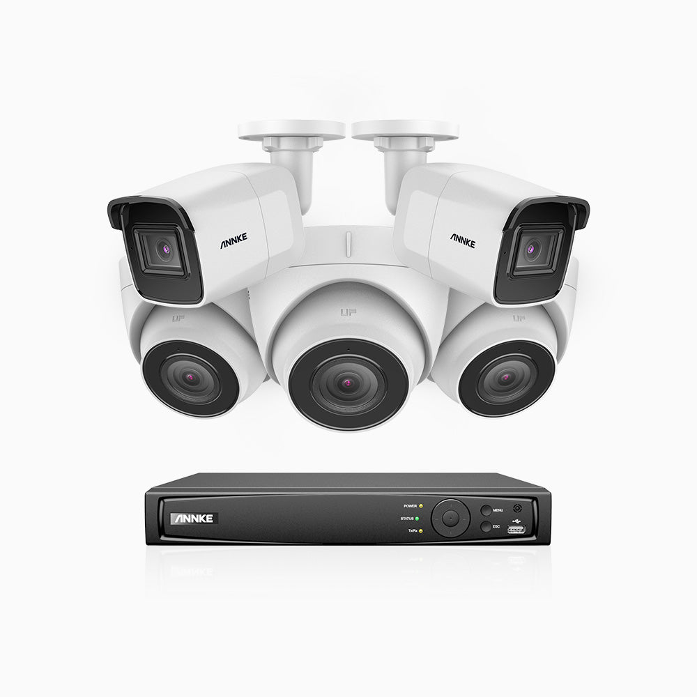 H800 - Kit videosorveglianza PoE 8 canali 8 MPX (4K), 2 telecamere bullet e 3 telecamere turret, visione notturna a colori e IR,microfono integrato, riconoscere di persone e veicoli, supporta ONVIF e RTSP