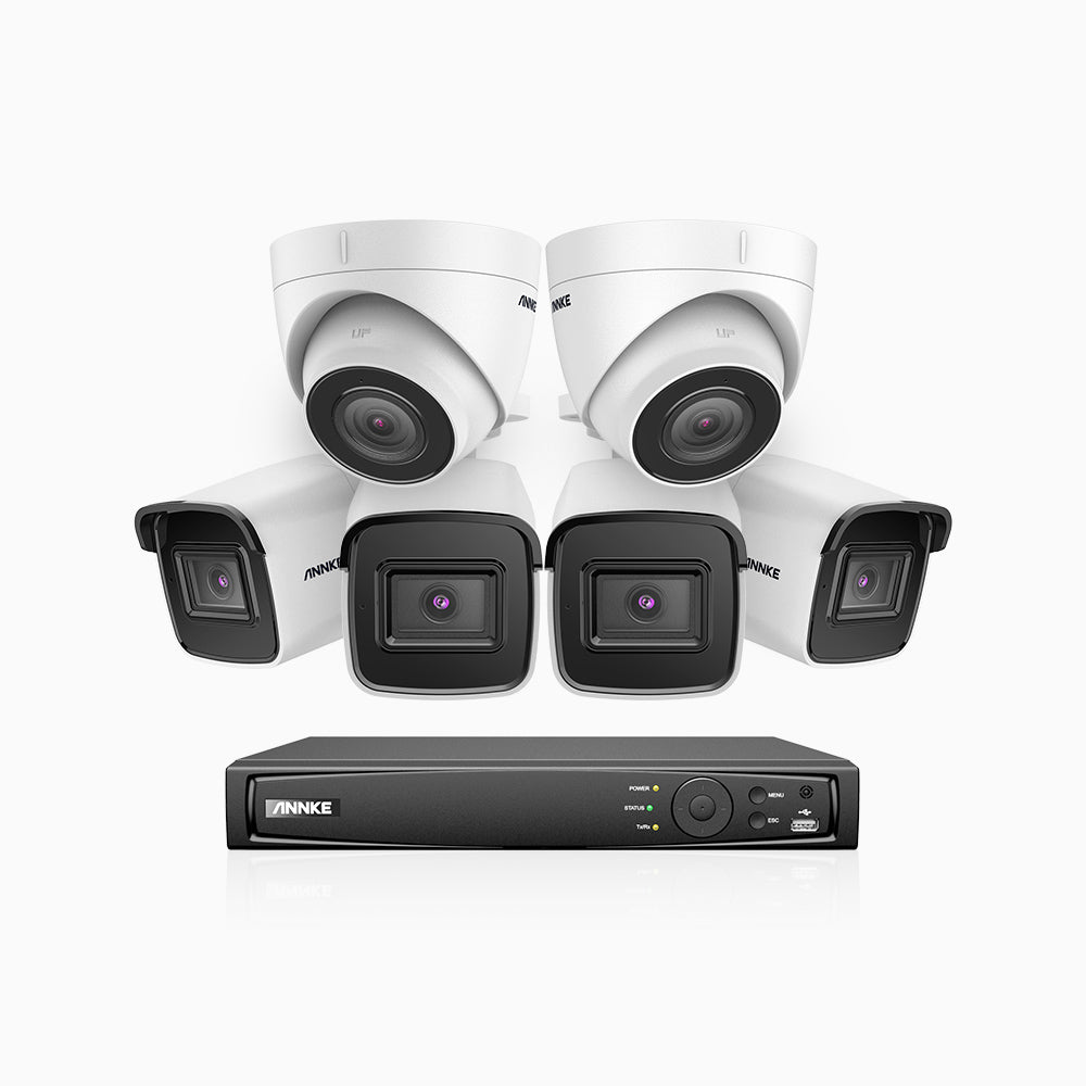 H800 - Kit videosorveglianza PoE 8 canali 8 MPX (4K), 4 telecamere bullet e 2 telecamere turret, visione notturna a colori e IR,microfono integrato, riconoscere di persone e veicoli, supporta ONVIF e RTSP