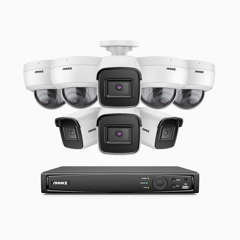 H800 - Kit videosorveglianza PoE 8 canali 8 MPX (4K), 4 telecamere bullet e 4 telecamere dome, resistente ai vandalismi IK10, visione notturna a colori e IR, microfono integrato, riconoscere di persone e veicoli, supporta ONVIF e RTSP