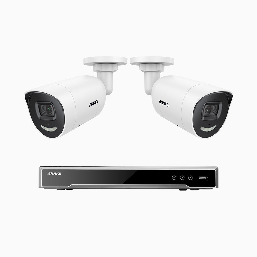 H800X - Kit videosorveglianza PoE 8 canali con 2 telecamere 4K con sensore BSI da 1/1,8'', apertura f/1,6 (0,003 Lux), sirena e allarme stroboscopico, audio bidirezionale, rilevamento di persone e veicoli, protezione perimetrale, funziona con Alexa