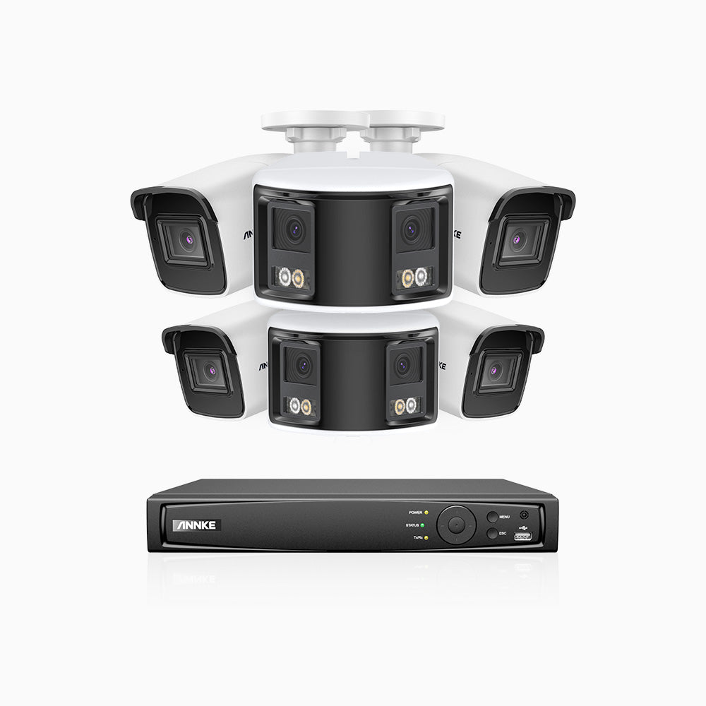HDCK680 - Kit videosorveglianza PoE 8 canali con 4 telecamera 4K e 2 telecamera 6 MPX doppia lente(ultra grandangolo 180°), visione notturna a colori, microfono incorporato, riconoscere di persone e veicoli