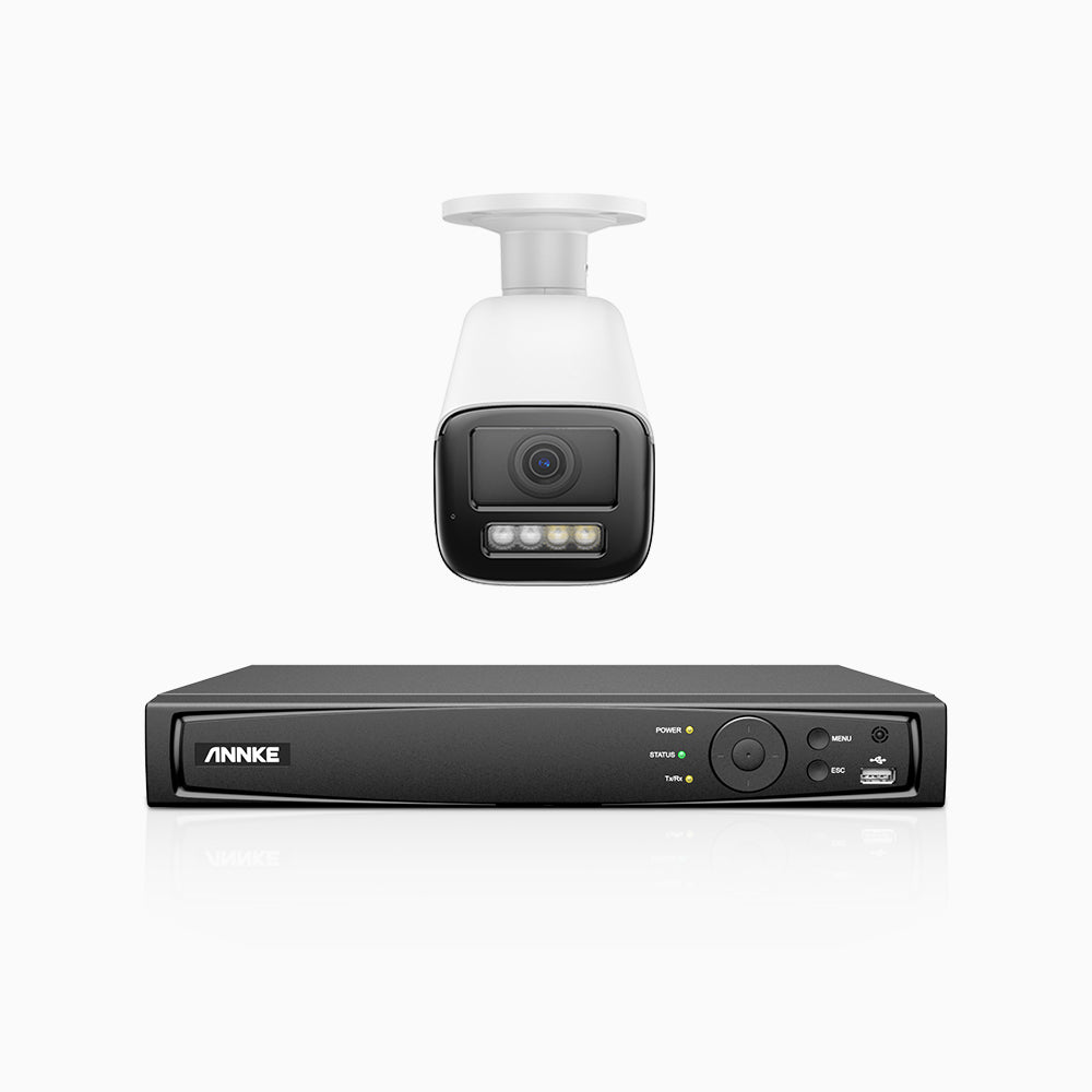 HZ804 - Kit videosorveglianza PoE 4 canali con 1 telecamera 4K, zoom ottico 4X, doppia luce visione notturna, rilevamento del movimento 2.0, Microfono integrato, sirena e allarme stroboscopico