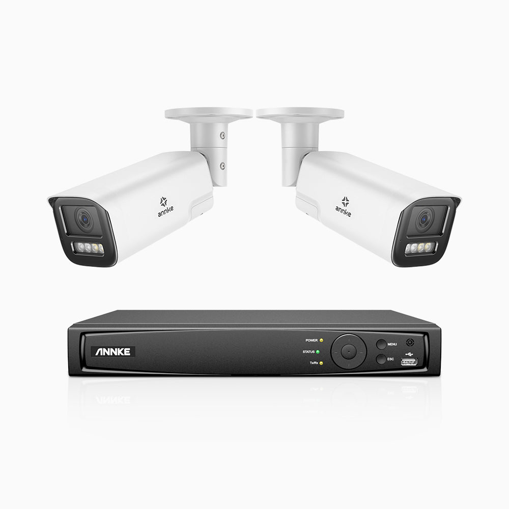 HZ804 - Kit videosorveglianza PoE 4 canali con 2 telecamere 4K, zoom ottico 4X, doppia luce visione notturna, rilevamento del movimento 2.0, Microfono integrato, sirena e allarme stroboscopico