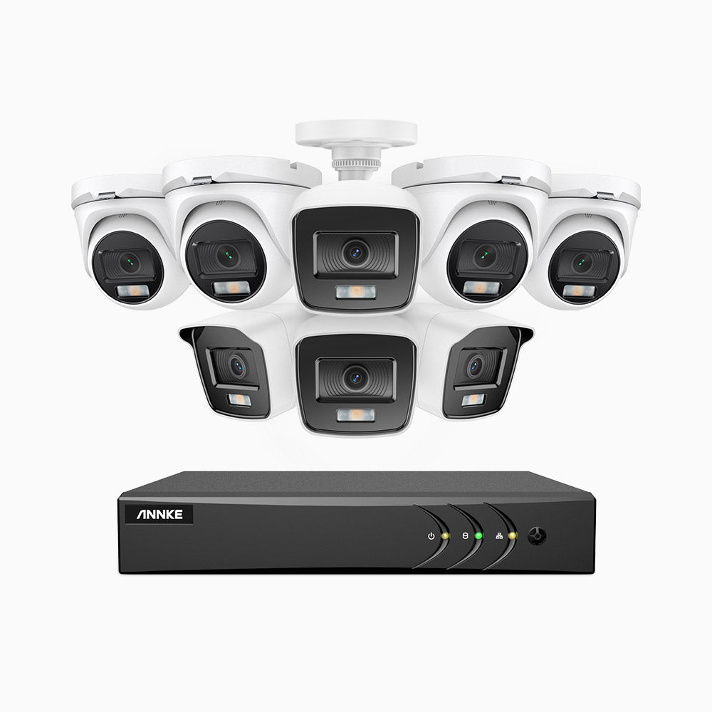 NightChromaTM NAK200 - Kit videosorveglianza 16 canali 1080p, 4 telecamere bullet e 2 telecamere turret, visione notturna a colori Acme, f / 1.0 Super Apertura, 0.001 Lux, 121° FoV, Allineamento Attivo