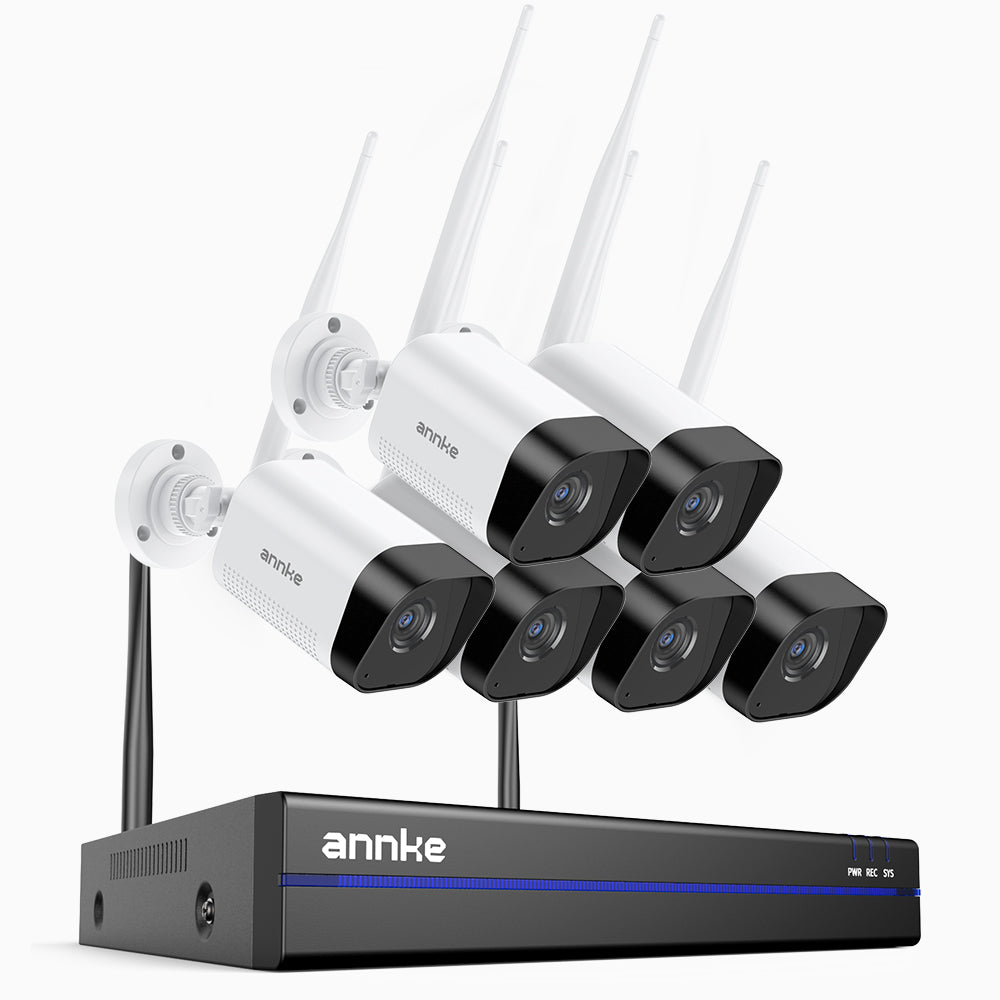 WS800 - Kit videosorveglianza wireless 8 canali con 6 telecamere 8 MPX, WiFi dual-band 2,4/5,8 GHz Pro, rilevamento umano AI, audio bidirezionale, visione notturna, compatibile con Alexa